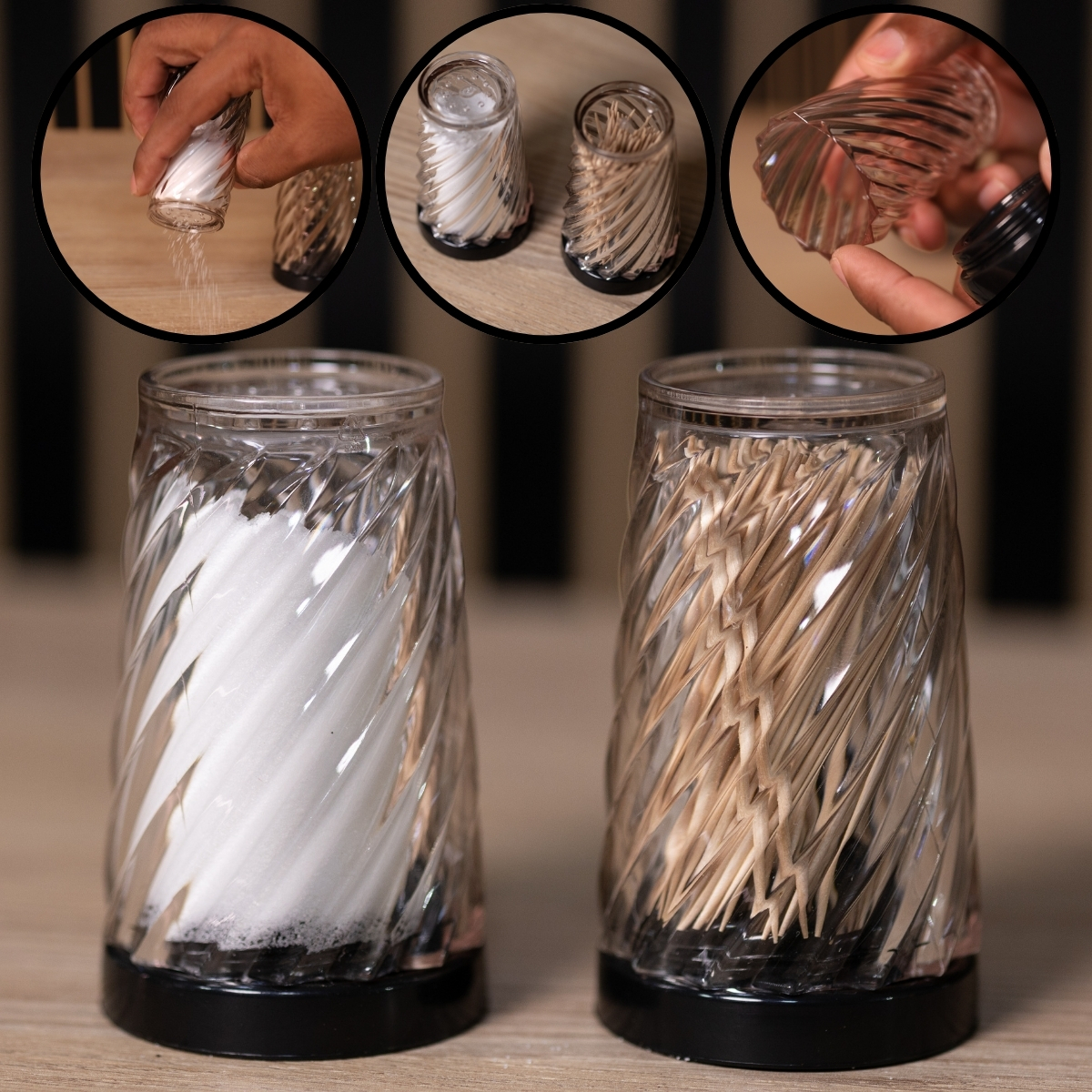 - Uso duplo: Funciona perfeitamente como saleiro e pimenteiro, oferecendo praticidade em um único produto.